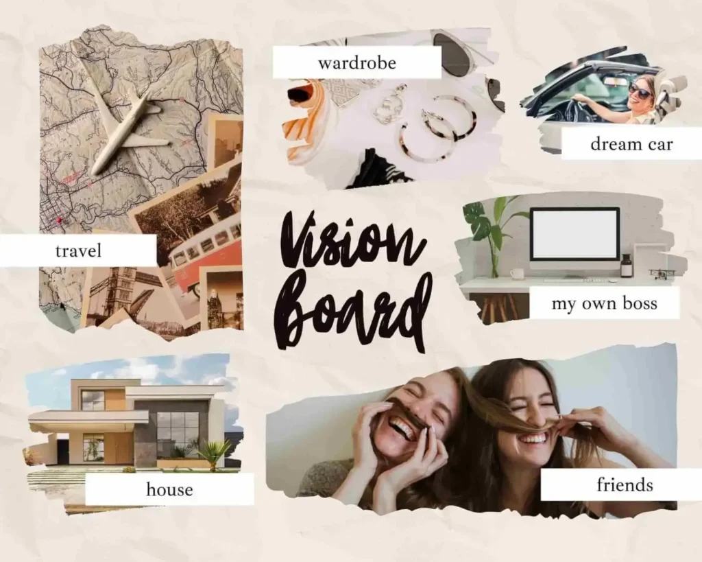 Ein Vision Board ist eine Collage aus Bildern und Wörtern, die deine Träume und Ziele darstellen.